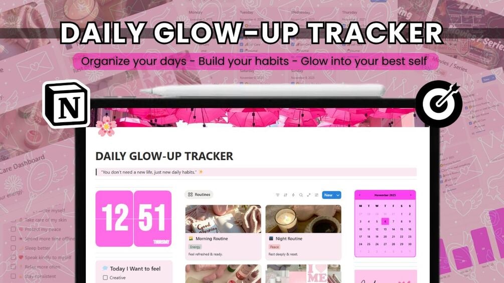 Daily Glow-Up Tracker || Aesthetic Notion System for Girls